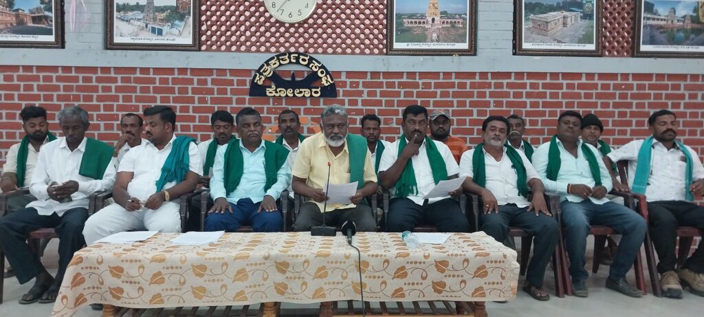 ಈ ಸಂದರ್ಭದಲ್ಲಿ ಸಂಘಟನೆಯ ಜಿಲ್ಲಾ ಅಧ್ಯಕ್ಷ ಬೆಟ್ಟಶೆಟ್ಟಹಳ್ಳಿ ರಮೇಶ್ ಮಾತನಾಡಿ ಜಿಲ್ಲೆಯ ರೈತರು ಸ್ವಾಭಿಮಾನಿಗಳು ಕಷ್ಟಕರ ಪಟ್ಟು ಟೊಮೆಟೊ ಆಲೂಗಡ್ಡೆ ಸೇರಿದಂತೆ ತರಕಾರಿಗಳನ್ನು ಬೆಳೆಯುತ್ತಾರೆ ಆದರೆ ಅವುಗಳಿಗೆ ಸಂಸ್ಕರಣಾ ಘಟಕವಿಲ್ಲದೇ ಸಮಸ್ಯೆಯಾಗುತ್ತಿದೆ ಕೂಡಲೇ ಸಂಸ್ಕರಣಾ ಘಟಕ ಸ್ಥಾಪಿಸಬೇಕು ವೈದ್ಯಕೀಯ ಹಾಗೂ ಇಂಜಿನಿಯರ್ ಕಾಲೇಜಿಗೆ ಬಂಗಾರಪೇಟೆ ತಾಲ್ಲೂಕಿನ ಗಡಿ ಭಾಗದಲ್ಲಿ ಆನೆ ಹಾವಳಿ ಹೆಚ್ಚಾಗಿದ್ದು ಶಾಶ್ವತ ಪರಿಹಾರ ನೀಡಲು ಬಜೆಟ್ನಲ್ಲಿ ಅನುದಾನ ಬಿಡುಗಡೆ ಮಾಡಬೇಕು ಎಂದು ಒತ್ತಾಯಿಸಿದರು.