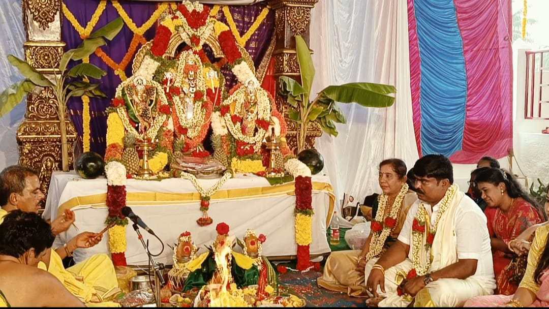 ಕೋಲಾರ: ಬಂಗಾರಪೇಟೆ ತಾಲೂಕಿನ ಕಸಬಾ ಹೋಬಳಿಯ ದೊಡ್ಡ ವಲಗಮಾದಿ ಗ್ರಾಮ ಪಂಚಾಯಿತಿ ವ್ಯಾಪ್ತಿಯ ಚಿಕ್ಕ ವಲಗಮಾದಿ ಗ್ರಾಮದ 700 ವರ್ಷಗಳ ಇತಿಹಾಸವುಳ್ಳ ಶ್ರೀದೇವಿ, ಭೂದೇವಿ ಸಮೇತ ಶ್ರೀತಿಮ್ಮರಾಯಸ್ವಾಮಿ ದೇವಾಲಯದಲ್ಲಿ ಶುಕ್ರವಾರ ವೈಕುಂಠ ಏಕಾದಶಿ ಪ್ರಯುಕ್ತ ಶ್ರೀನಿವಾಸ ಕಲ್ಯಾಣೋತ್ಸವವು ಸತತ ಮೂರನೇ ಬಾರಿಗೆ ದೇವಾಲಯದ ಧರ್ಮಾಧಿಕಾರಿಗಳು ಹಾಗೂ ಕರ್ನಾಟಕ ಆಹಾರ ಗುತ್ತಿಗೆದಾರರಾದ ಆರ್.ಮುನಿರಾಜು ರವರ ನೇತೃತ್ವದಲ್ಲಿ ಅತ್ಯಂತ ವೈಭವದಿಂದ ನಡೆಯಿತು.